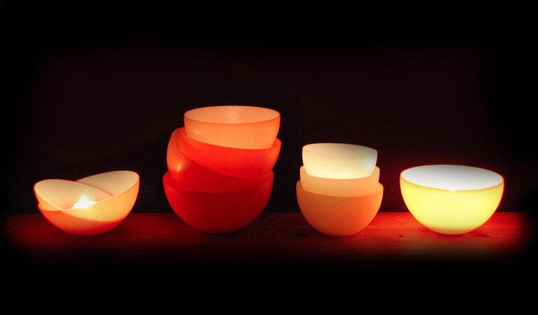 Ein Moon Set besteht aus drei Bienenwachsschalen, die individuell oder verschiedenartig kombiniert als Lichtskulptur benutzt werden können. Jede Schale beinhaltet ein Teelicht aus Bienenwachs und einen passenden Glasbehälter mit Zentrierung. Die Wachsschalen sind sehr hochwertig, dünnwandig, glatt und filigran gearbeitet. Durch den zweifarbigen Guss (weiß innen, farbig außen) aus Bienenwachs erhalten sie eine sehr hohe Leuchtkraft die sich als ein warmes und wohltuendes Licht in jedem Raum verbreitet. Leichte Unregelmäßigkeiten in Form, Größe und Farbe sind möglich da jede einzelne Schale handgefertigt ist. Moon Sets sind in drei verschiedenen Größen (S, M, L) erhältlich. Es können auch alle drei Größen in einem Neuner Set kombiniert werden. Standart Farben sind Elfenbein Weiß, Rot, Orange, Gelb, Türkis und Grün.